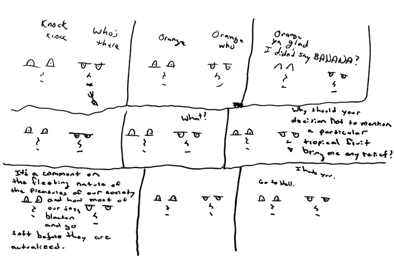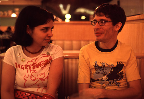 DiaryNOTE: If you don't happen to be me, this will be excruciatingly dull to read.4/4/05 It's like a call So I went to Florida. Not so much on purpose, mind you. I had to go down for a conference, where I showed off a THz imaging system I worked on. You can skip this paragraph, if you want; it's the one where I complain about everything that I didn't like about Florida. The rest should be better. Anyway, Florida really isn't the place for me. It's too hot and expensive and full of SUVs with Bush bumper stickers. I prefer to stick to the frigid North where people know how how to live and think and vote. No offense to the nice people there. Anyway, the conference was a lot of me answering the same questions over and over again to what seemed like every person there. My system has moving parts and whatnot, so it tended to attract attention. Which is good, but also meant that by the end I was so sick of my imaging system that I can't stand the thought of spending another second working on it. I guess that's good though, since we already published a paper on it, and I think it's kind of done physics-wise. So the conference was three days of that (with some more time to set everything up and take everything down). I wasn't there so much with my university as I was with Newport. Since the setup uses their motion control stuff, they offered to pay to send someone and the equipment down, and the someone turned out to be me. I think it was pretty good for them; it brought lots of people by. I wish I could have gone to the actual talks at the conference instead of staying in the exhibit hall all the time, but oh well. They put me up in a very expensive hotel (the place where the conference was being held, even). Unfortunately, they're just reimbursing me - I had to pay for everything with my card initially. The hotel was about $1000 for the five days and I had a rental car and whatnot, so my bank account is a little lower than low at the moment. I managed to buy a week's worth of groceries for $10 yesterday, so I'll be all right. Oh, also, fucking Florida. I had to pay $4.50 in tolls one night to drive three miles for Chinese takeout. Anyway, that concludes the complaining segment of my Florida entry. There were nice parts, too. I mean besides getting to fly on an airplane, which fills me with glee, even though I'm not ten years old or retarded. On the first night there, I drove out to visit my grandparents (of course my grandparents live in Florida, at least two of them anyway). A lot of my other family members were there; my brother, two aunts, an uncle, and several cousins. It was nice to see them. Everybody was there since it was my grandmother's 80th birthday. Well, the day before I got there was her 80th birthday, so I had to miss that because my life is peculiarly timed. My dad, stepmom, sister and brother-in-law also visited, but they were leaving as I got there. I mean, just as I got there; I saw them in the airport. We talked for a little while. It's kind of weird to randomly run into someone you know in a city a thousand miles from where either of you live. The next few days, I mostly worked at the conference and didn't do much else. Dr. Redo, one of the people in my research group, was there for a few days (not the whole conference), so we went to Orlando one of the days for dinner. We kind of walked around downtown and talked about how ridiculous America is (he's from Spain). We went to a pita place, and I had a falafel thing, which was super good (especially since I tended to not eat during the day because everything in the hotel was priced as though it were made out of the purest gold). I spent my free time in my hotel room readying Dostoyevsky, which I think is the most inappropriate possible activity to pursue when one is staying at a tropical resort. Which is exactly why I did it, of course. There are several pools at the hotel. A giant stone octopus looms over the largest one. See! ![]() THIS DOES NOT MAKE ME WANT TO GO IN THE WATER On my last day, I got to visit Jeffrey! He lives in Orlando. We went out to eat at a place called Sweet Tomatoes, which is apparently a chain of salad bar type places, but it must not reach up to New York since I'd never heard of it. I got to see his house and meet his girlfriend and kitty his housemate's very silly dog. This is a picture of Jeffrey and Kristen: ![]() All in all, it was pretty nice. I have to admit that I spent more time than I should have fretting about what I was missing back at the lab, which is a little neurotic, I know. I got over that when there were interesting things going on, though. P.S. Some CDs I ordered a few weeks ago finally came in the mail today (albums by Architecture in Helsinki, the Decemberists, Ida and Saturday Looks Good to Me) and my iPod has hit an awesome milestone: A whole fortnight! All of it's legal, too! 3/3/05 I'll uproot it without tears So I got a fellowship! This means that I get paid twice as much as before, and I technically don't have to "work", just do research. Of course, the only work I've been doing is research, so I guess it doesn't make much of a difference. The double pay thing is kinda nice, though. Also, since it's money coming from the outside rather than through my research group's existing funding, it saves us all kinds of money. Which is nice. I'm excited about a show I'm going to on Saturday. This will be the fourth weekend in a row that I've gone to a show! The first one was horrid, the second one may as well have not existed, but the third one (Kamikaze Hearts) was really nice and the upcoming one (Missy Bly and the Frank Boscoes), put on by Hello Pretty City will be awesome, I'm sure of it. 2/13/05You ain't never gettin the contents of my blueberry boat! So I passed my qualifier! This means that I'll probably have a Ph.D. in a few years. Peculiar! Eric, Jess and I went to a show last night. It was the worst show ever! We went to the Flywheel to see Cars Can Be Blue, but they weren'