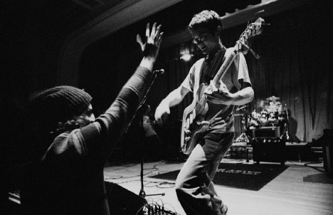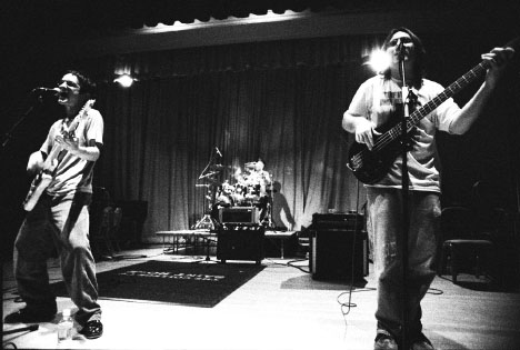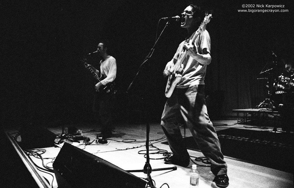 Big Orange Crayonmusical thingsJohn Brodeur and the Suggestions, the Kamikaze Hearts, and the Orange College of St. Rose, Albany January 26th, 2002 Ok, so today I shouldn't have spent the time to develop these pictures because now I'm going to have to stay up late to get my homework done, so I really can't write a review of this show (I know, I never do any more it seems). Sorry. It was really fun, though. It was my first time seeing John Brodeur & the Suggestions, and I was really impressed, and the Kamikaze Hearts are always fun. And the Orange - this was their second to last show ever, which is kinda sad, but they've really been great all the time they've been together, and it's cool that they're going to move on sounding as good as they do now... So anyway, pictures: I tried a new film/developer combination for this show, thinking that if I use a modern film and modern developer, I would get better grain and such than my normal formula of Tri-X (released 1952) and Rodinal (sold since about 1890 or so), but things don't always turn out like you would expect. Kinda really mostly totally grainy. Oh well. At least there's a bit more shadow detail... John Brodeur and the Suggestions: ![]() ![]() ![]() The Kamikaze Hearts: ![]() ![]() ![]() ![]() Yay for playing around with strange perspective with wide angle lenses. Here's a bigger version ![]() ![]() The Orange: ![]() I like this one, so here's a big version ![]() ![]() ![]() Matt from the Kamikaze Hearts gives Ben some help with his guitar... big version Camera stuff: Body: Nikon F3HP Lenses: 24mm f2.8, 50mm f1.8, and 105mm f2.5 Nikkors Film: Kodak T-Max p3200 exposed at ISO 3200, developed in Ilford Microphen (1+1) Please don't use these elsewhere unless you are in one of the bands or are a nice person. |
