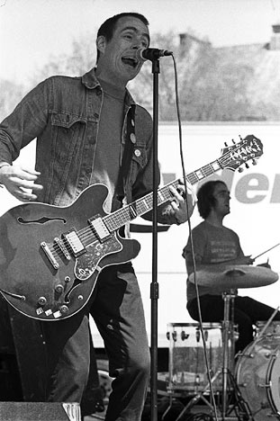 Big Orange Crayonmusical thingsTed Leo/Pharmacists Colgate University, Hamilton, NY April 27th, 2002 Ooh no time no time, I really probably shouldn't have developed these tonight on account of that essay that I still have to do, but eh. This was a pretty silly show though - Ted and the Pharmicists were the only real band there, the rest was all Colgate talent show stuff. Oh lordy. But I had lots of fun. Pictures: ![]() ![]() ![]() ![]() ![]() ![]() ![]() ![]() ![]() ![]() ![]() ![]() ![]() ![]() I'm not explaining these ones... ![]() Bigger versions of these ones (aw yeah): top ... bottom ![]() Don't mess with Ted. Teddy fuck you up. Camera stuff: Body: Nikon F3HP Lenses: 50mm f/1.8, 105mm f/2.5, 135mm f/3.5 and 24mm f/2.8 Nikkors Film:Kodak Tri-X exposed at ISO 200, developed in Rodinal 1+100 at 18 degrees for 17 and three quarters minutes. Imagine that! Me actually pulling film at a show! The sun can do strange things to a person... and keep in mind that any grain you see in these is actually just noise from The Worst Film Scanner In the World, this stuff is actually pretty smooth under an enlarger... Please don't use these elsewhere unless you are in the band or are a nice person. |