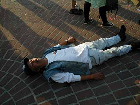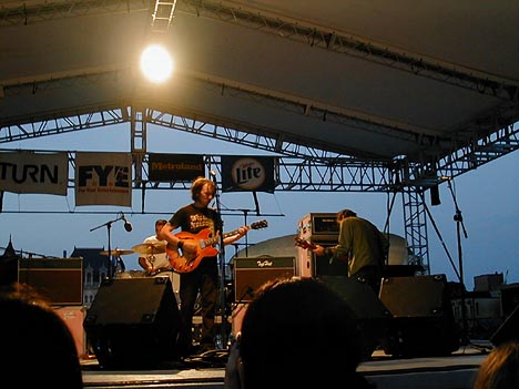 Big Orange Crayonmusical thingsThe Orange, Marah and Elliott Smith at the Empire State Plaza, July 21st 2000 There are pictures at the bottom! Yay this is the second good show I've gone to this week! The Orange were the first band to play. I've lost track of how many times I've seen them... Anyway, they did a great show. I feel kind of weird jumping around at the plaza because of all of the eyes in back of me, but I still managed to once or twice. I hope they made lots of new fans. There were lots of kids there that I don't remember ever seing at their shows, but they seemed to enjoy it. Maybe they'll show up at the show at Valentine's on the 29th. I think that Marah was the band that all of the guys with mullets were there to see. They were classic rock-ish. I left a few seconds into their first song to go wander around. Elliott Smith was the headlining guy. I have to admit that although this is the second Elliott Smith show I've gone to, I've never listened to his albums. Not that I don't like him, I just never got around to it. He really did a great show, though. There were a ton of people there by the time that he started playing, and he ended up doing two encores. I think I like his slower, softer songs the best, but the louder ones are pretty good, too. I think I'll buy some of his albums if I ever get a job. My only peeve was that they played a constant barrage of Dave Matthews Band and Led Zeppelin between the bands. It's a free show, though. I shouldn't complain. Pictures: The Orange ![]() ![]() ![]() ![]() ![]() Marah ![]() I watched this guy finish off a bottle of rum and pass out after their set. He got taken away in an ambulance. I hope he's ok, but there really are better places to do that... Elliott Smith ![]() ![]() ![]() ![]() |