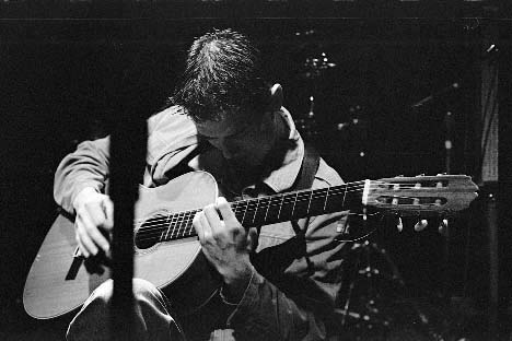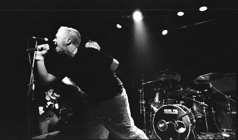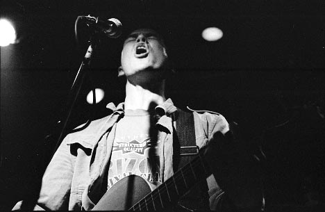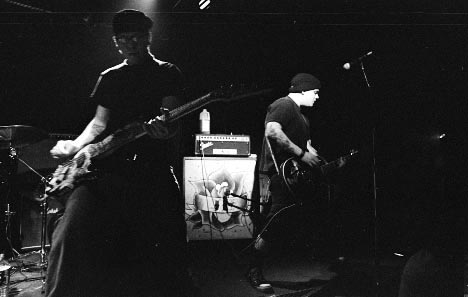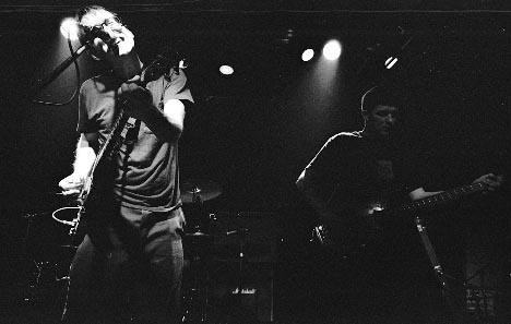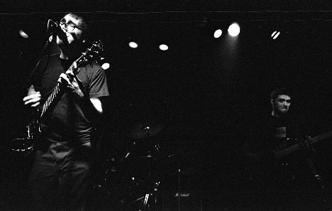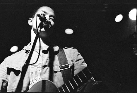 Big Orange Crayonmusical thingsJerk Magnet, Breaking Pangea, Jupiter Sunrise and Count the Stars Valentine's, Albany December 29th, 2001 Wow, this was Mark's last show around here before he goes on tour and ends up in California... I've been going to his shows since in the wee early Me and Jeremy days and now he's a friend and all and I'm happy for him and going to miss him, too... I'm not going to write a very in-depth review for this show since it was a few days ago and I'm sitting up in Zak's house trying to sneak some writing in while he's eating dinner. Anyway, I had fun at this show, even if the large number of fourteen year old girls throwing around Count the Stars thongs was unnerving. Jerk Magnet played first. I get excited about punk bands as much as I get excited about cold oatmeal these days, but that said they did a pretty good show. High energy, volume, speed, .etc. Breaking Pangea was also good. They're more along the compex hardcore vein and they pretty much kick ass at it. Mark (Jupiter Sunrise) played third and his show showed off the reasons I'm going to miss him as a musician and as a person. It was just him for most of the set (with Ben from the Orange joining him for a few songs) and he singlehandedly rocked our collective socks off. Ariel and I held up Dadaist signs in an attempt to confuse and frighten him into lauging on stage with some success. Fun fun fun. Count the Stars are were the headliners that made all the ladies swoon. Ariel and I got out of the way so as not to be crushed by the throngs of obsessive, early-teen CTS fans, and thus I have no pictures of them. Speaking of which: Pictures: When you push Tri-X to ISO 3200, there is a huge increase in contrast which was accompanied by high contrast lighting at the show (two spotlights at the faces of the acts and a few scattered colored backlights), so these are super mega ultra contrasty. I kind of like it. Also, the negative got a long scratch along the top, and that's the cause of the white lines on the top. If I made actual prints, they wouldn't show up, but the film scanner is like, "hey! a barely noticable flaw! LOOOOK!" Oh well... Jerk Magnet: Anyway: ![]() ![]() Breaking Pangea: ![]() ![]() ![]() ![]() ![]() ![]() Jupiter Sunrise: ![]() ![]() AAAAAAAA! No, this doesn't look like Mark. ![]() ![]() ![]() ![]() ![]() ![]() ![]() ![]() ![]() ![]() ![]() That white blob is where the developer missed a spot. I guess I could have just blacked it out and no one would have noticed, but I like the little guy. ![]() ![]() ![]() Camera stuff: Body: Nikon F3HP Lenses: 24mm f2.8, 50mm f1.8, and 105mm f2.5 Nikkors Film: Kodak Tri-X pushed to 3200 in Rodinal 1:110 Please don't use these elsewhere unless you are in one of the bands or are a nice person. |